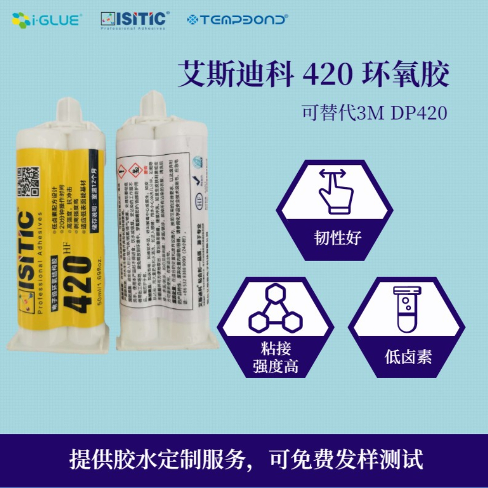 1、艾斯迪科雙組份環(huán)氧膠420是低鹵素配方設(shè)計,可適用于電子行業(yè),總鹵素含量低于550ppm;